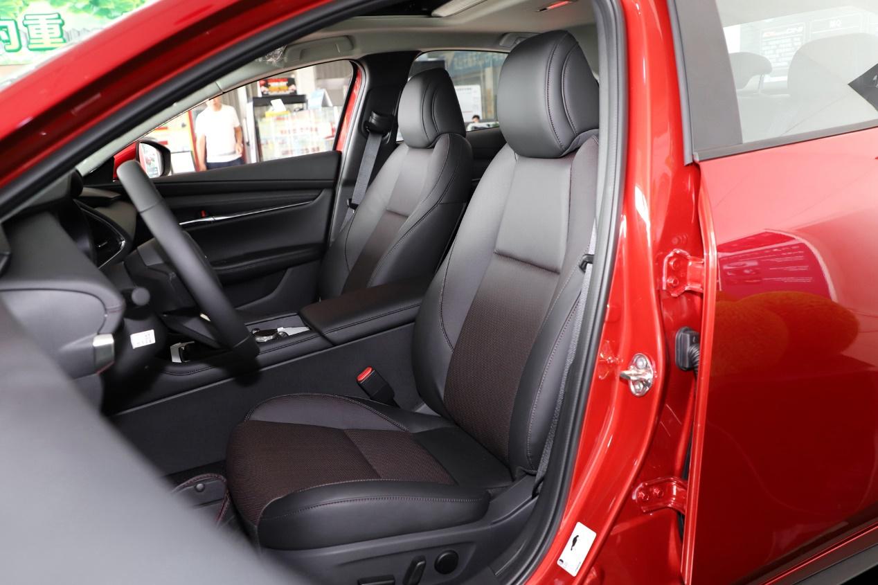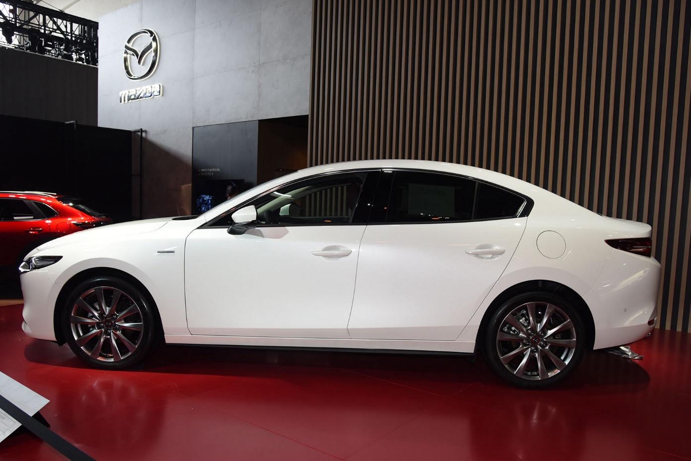 外观方面,新车整体沿用了现款2.0L车型的设计风格,采用了雪花珍珠白的车身喷漆,车头造型简洁明快,魂动2.0设计理念融入了马自达新的家族式设计元素,中网采用了马自达标志性的盾型造型,并采用高光与哑光结合的设计,中网下部的镀铬装饰条贯穿整个车头,搭配造型犀利的前大灯组,前脸造型看上去更具视觉冲击力。