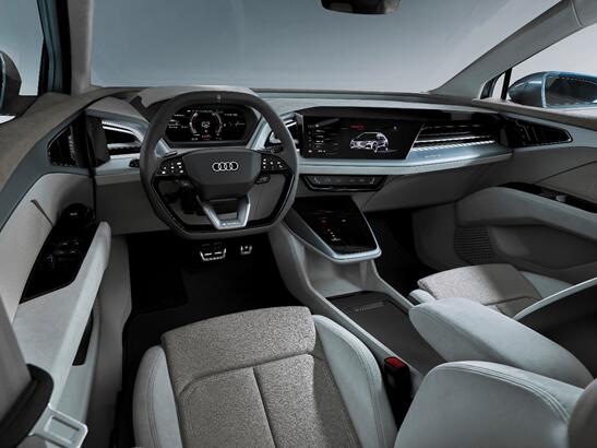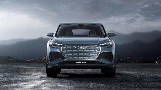 作为一款纯电动概念车型,奥迪Q4 e-tron采用了奥迪纯电动车型家族式的设计风格,该风格将奥迪品牌标志性的外观设计语言与电动化车型的特色完美融合,呈现出极强的辨识度。新车前脸使用了大尺寸封闭式单辐格栅的造型,搭配上两侧造型个性的矩阵式全LED大灯,营造出极强的科技感。