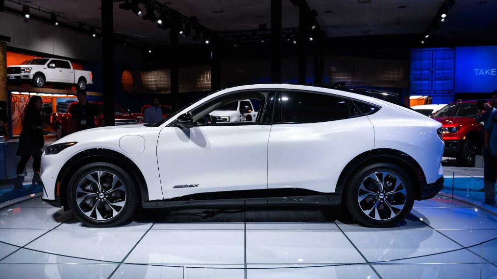 内饰部分,采用了全液晶仪表盘,以及一块15.5英寸竖屏,结合贯穿式的出风口设计,整个内饰简洁,并将搭载最新的SYNC系统。尺寸部分,Mustang Mach-E的车身为4724*1880*1600mm,轴距为2973mm,达到了纯电动中型SUV的标准。