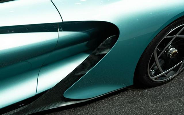 侧面是双色车身,看着很潮流也有个性。配合巨大的进气口以及碳纤维材质的侧裙,再加上前后突出的宽体翼子板,整车气势一点都不输那些牛马类的主流顶级跑车。