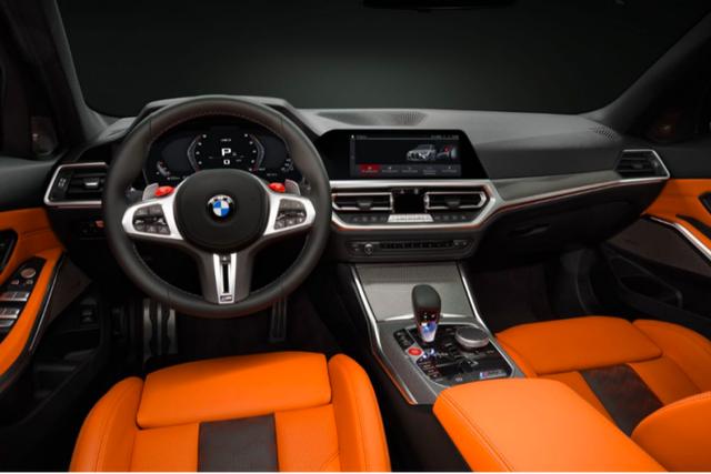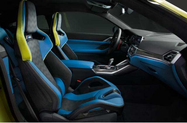 但M4的车内氛围,确实让我大吃一惊,不仅主色调鲜艳活泼,就这一对儿被碳纤维覆盖的桶形座椅,就足够让人垂涎三尺了。之前我一直都很钟意M4 ZCP的那对儿镂空造型的座椅,但看完这对儿椅子之后,感觉ZCP完全不在了。当然了,你也别高兴的太早,这对儿座椅可是要花钱选装的,至于价格嘛,听我一句劝,还是不问最好。