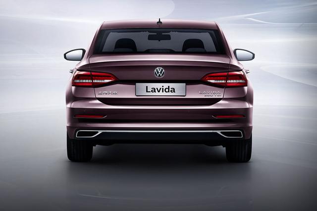 车尾最大变化同样是换装了全新品牌LOGO车标,与前脸形成了呼应,整个车尾设计相对简洁,尾灯组和头灯一样采用LED光源,车尾右下角铭牌依旧为"LAVIDA"字样,下方双边镀铬排气孔得以保留,造型采用了对称式设计。