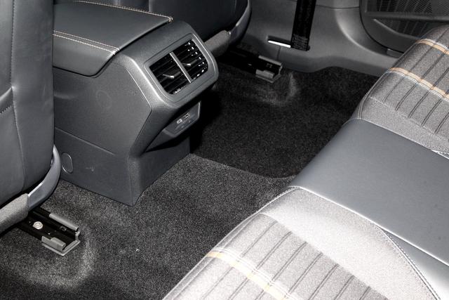 后排座椅与前排一样包裹性不错,同样在坐垫上有明显的加长,乘坐时对大腿起到了更好的支撑效果,但后排中央地板突起依然比较高,且中间位置靠背较硬,后排坐满三人的时候,中间乘客比较难获得一个舒服的坐姿。此外,令人遗憾的是全系都没有配备后排中央扶手。