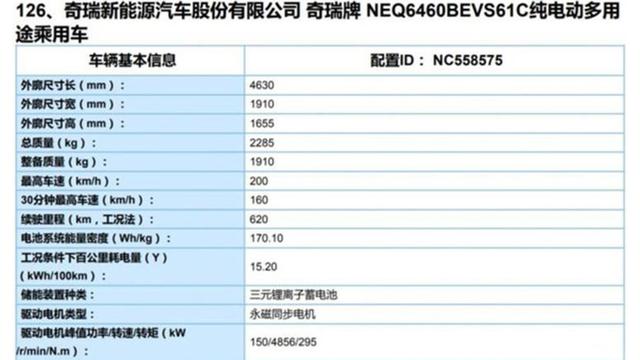 目前奇瑞蚂蚁推出的4款车型NEDC续航为510km,且电机均为后置后驱布局。最近我们从工信部获取到奇瑞蚂蚁的新消息,新车将推出一款续航620km的车型。从公布的信息来看,新车的车身尺寸和现款车型一样,不过车身质量更高,达到1910kg。动力部分将换装最大功率150kW,峰值扭矩295N·m的电机,工况条件下电耗为15.2kWh/100km,推算电池容量大概在94.2kWh左右。目前还不确定新车什么时候上市,根据规划奇瑞蚂蚁还可能推出四驱版车型。