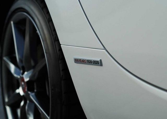 两门跑车的定于则可用一个字来概念“帅”,新车的侧面十分精炼,尺寸不小的轮圈,也可进一步彰显运动气质。而在细节部分前翼子板处还加入了“100 YEARS 1920-2020”字样标识,在视觉效果上尤为精致十分耐看。
