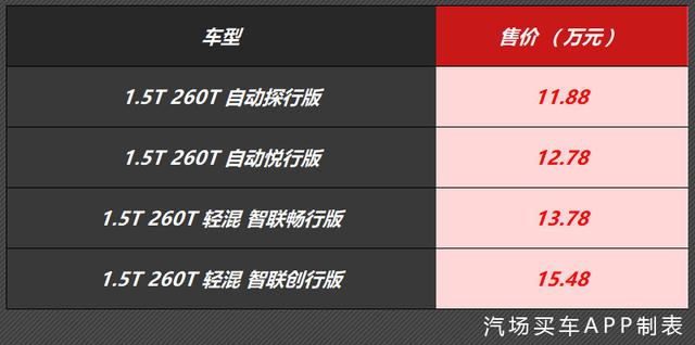 新车继续搭载一台最大功率190马力的沈阳航天三菱A415TD型1.5T发动机,搭配48V轻混系统,尾标采用了“260T”和“MHEV”标识。传动匹配7速双离合变速箱,而48V微混系统的加入也能让新车在节能环保和行驶平顺性方面得到提升。