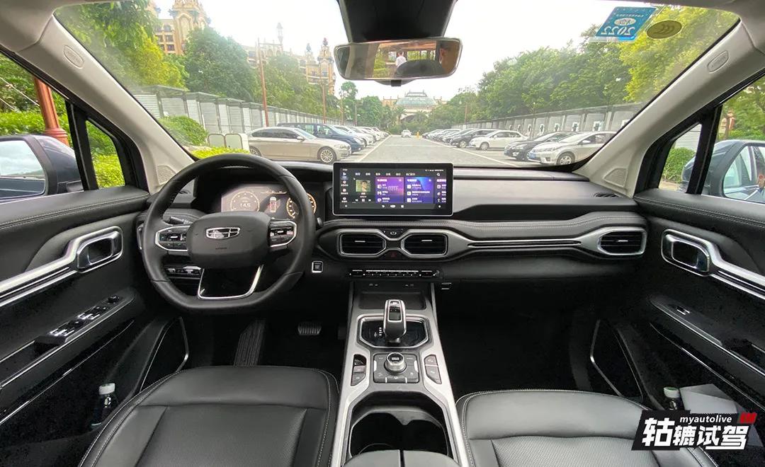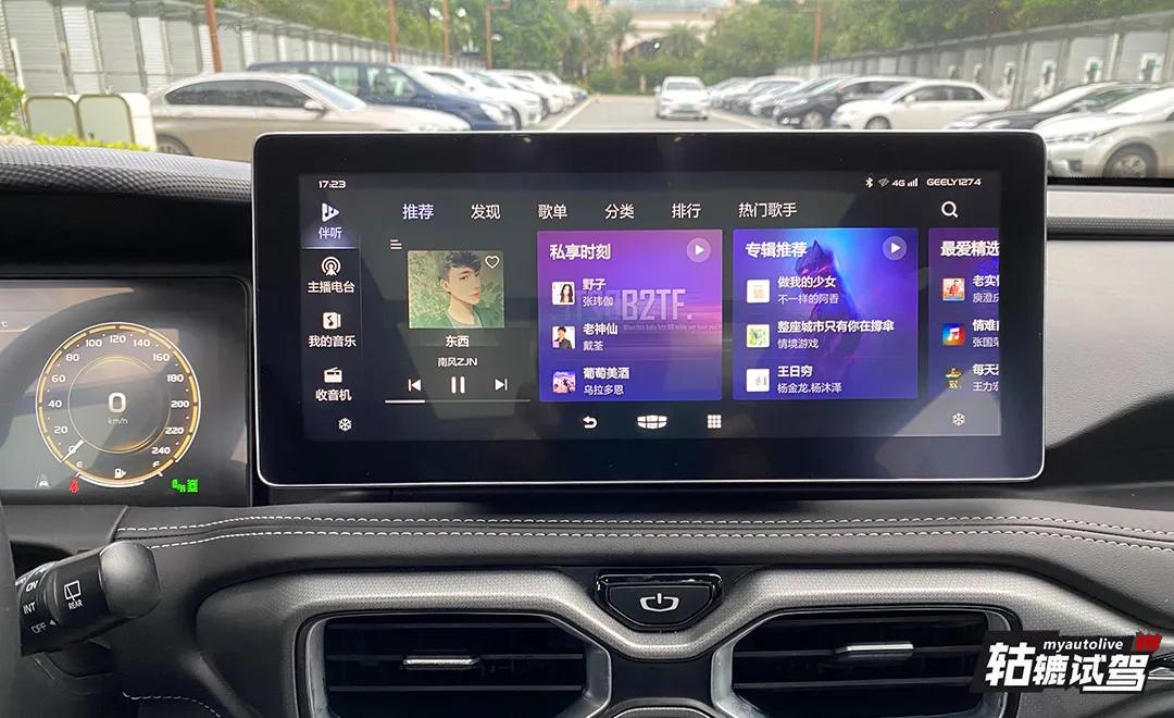 不得不提的是,豪越还配备了“超大杯”的科技配置,首先双12.3寸液晶仪表+中控大屏就很有科技感,画面清晰触控也灵活,支持三指飞屏,在仪表盘上就能看导航等信息。而其中的“你好,吉利”智能语音交互系统的识别率较高,体验感还是不错的。