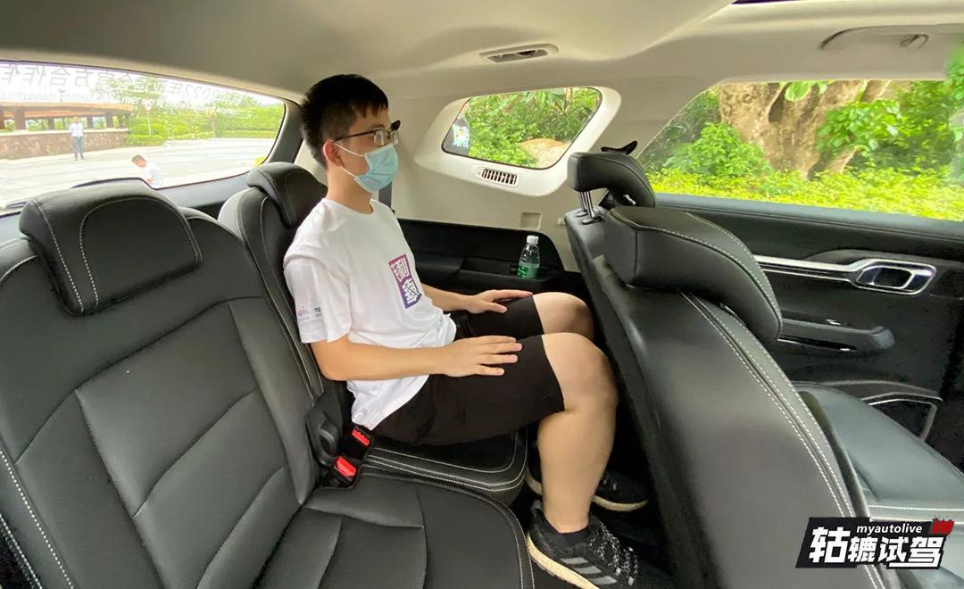 实际体验来看就是,将第二排调整到较舒适的状态时,第三排还能坐进身高180cm的小伙子,而且头部空间还挺充裕。更重要的是,第三排还有专属的空调出风口、侧玻璃窗、杯架、扶手等,如果对第二排座椅适当调节,完全能实现后两排座椅乘员的“权益平等”。