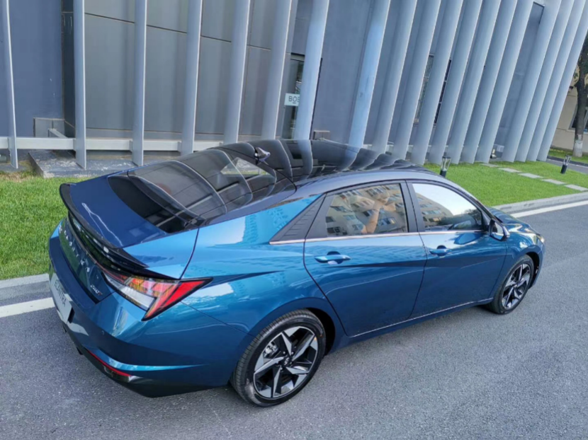 有一个细节上的小发现,来自于车尾。其后风挡玻璃和后备箱盖之间加入了一块黑色饰板,在视觉上起到了延伸挡风玻璃的效果,无形中也增强了溜背效果。第七代伊兰特提供极地白、幻影黑、冰海蓝、太空灰、炫彩橙、烈焰红六种车身颜色。其中1.5L TOP/240T GDi TOP车型(LUX次顶配车型可选装)非黑色车身在车顶、外后视镜、A/B柱位置为黑色饰板。
