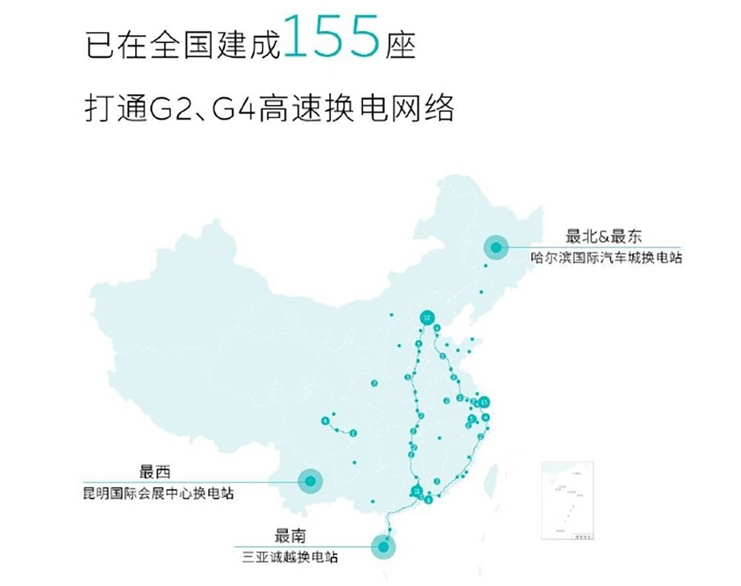 目前已经建成换电站155座,累计换电次数超过100万次。并打通了G2京沪高速、G4京港澳高速的换电网络。