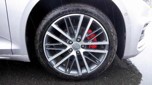 采用18寸的双五幅铝合金轮毂,搭配红色运动卡钳,带来了不错的运动感。