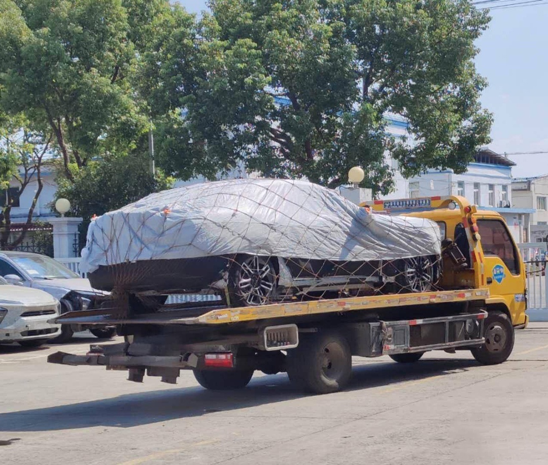 新车的背景有两台蔚来的试装车,板车上的车型虽然被车衣给遮盖,但整个车身造型与轿车吻合,故猜测该车或为蔚来EE7轿车。