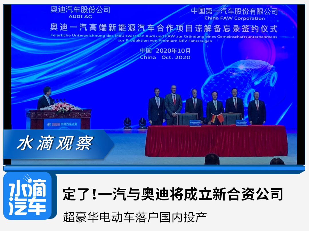 10月13日,正在召开的中德汽车大会传出重大消息:中国一汽与奥迪公司合资合作关系全面升级,双方签署了一份新的谅解备忘录,这份谅解备忘录的主体内容是关于双方“将共同成立一家生产PPE平台纯电动汽车的合资公司”。