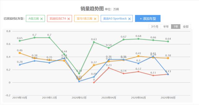 另外,CT4的车型太少,消费者选择范围有限,这在一定程度上不利于CT4销量的持续增长。反观其它的入门豪车,它们都为消费者提供了4-8款不同配置的车型进行选择。虽然产品力一般,但是"车海战术"还是管用。