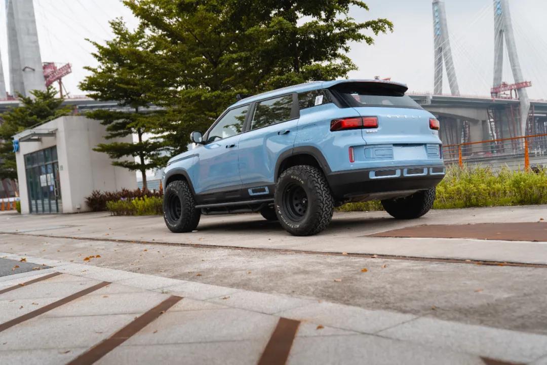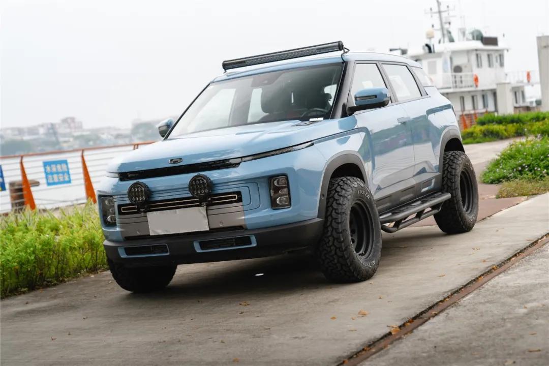 具体来看,ICON BOY的外观采用了复古蓝车身PET保护膜,仅是车身颜色就营造出很强的个性气质,加上运动型前保险杠、双探照灯、专属版行李架、阵列式探照灯、越野轮毂和 AT 轮胎等装备,让整车更具狂野气息。