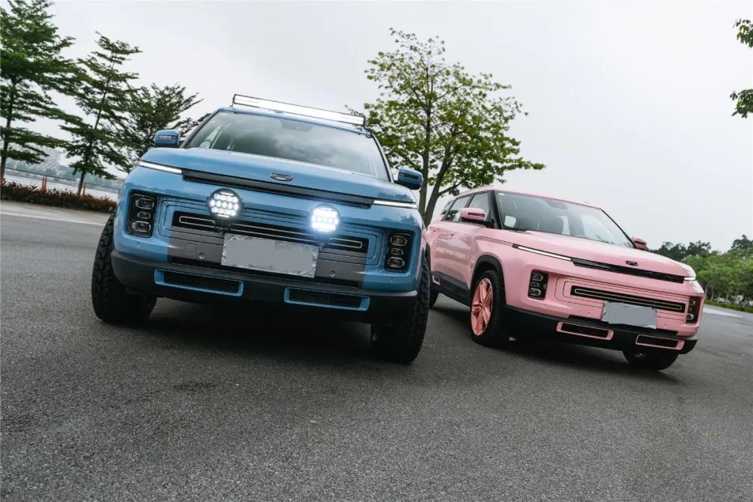 与 ICON BOY一同亮相的,还有满满少女感的樱花粉ICON GIRL。这款车采用樱花粉贴膜设计,并且轮毂也与车身同色,看起来十分可爱。