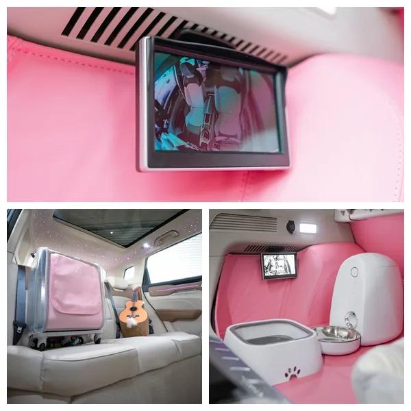 值得一提的是,考虑到不少女孩子喜欢养宠物,ICON GIRL还搭载后排宠物安全座椅、后备箱宠物互动监视系统、大型宠物用折叠滑梯等配置,既能让开车的你更安全地监视宠物在车上的动态,又可以提高宠物的乘车舒适性。