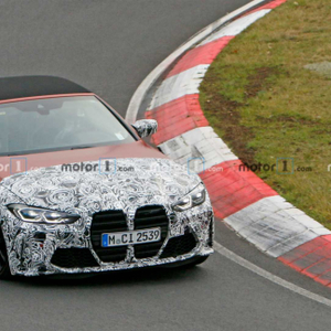 最近有人在纽伯格林附近拍到了带伪装的敞篷版M4 (配置|询价),两个超大的进气格栅格外醒目。
