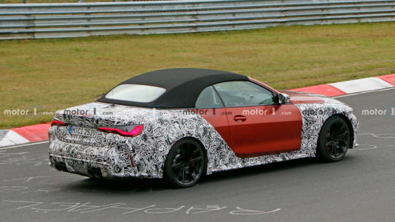 此次谍照中的软顶敞篷M4在外观上与自家兄弟M4 Coupe,4系 (配置|询价)敞篷之间的区别并不大。尽管消费者对软顶敞篷的接受程度一直不如硬顶车,但宝马依然坚持自己的设计理念。虽然官方尚未披露这款车的任何技术细节,但我们猜测这次的敞篷版M4使用的发动机与Coupe一样——3.0L直列六缸双涡轮增压发动机,其功率扭矩分别为353kw,550N∙m。