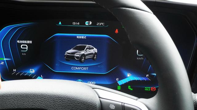 吉利身上,这样的情况,没有。我们还专门尝试了一下,使用EV模式把它的电池电量全部耗尽,你也不会在踩下油门时,被发动机和电动机拽来拽去。而如果你想让电池里拥有续航里程,只需要把驾驶模切换到COMFORT和ECO模式,再把制动力回收调整到L2-L3档位,开一会之后,续航就会逐渐增加。