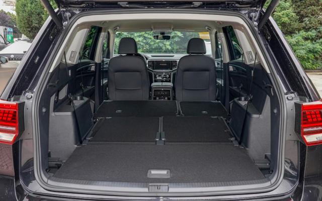 后备厢部分,途昂的后背下那个储物能力也有优势,在三排座椅全部打开的状况下,可以平放一个28英寸的行李箱,放倒后两排座椅后,可以形成一个纯平的地板,扩展能力很强,一家人使用起来很宽敞。