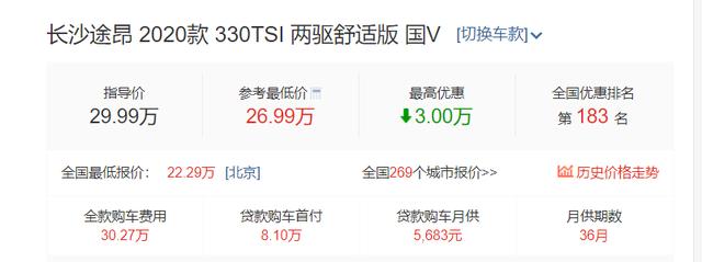 小结:途昂拥有霸气的外观、耐看的内饰、比较大的空间和实用的动力总成,而且目前它在长沙地区拥有3万起的全系优惠。所以,我们认为对于那些想要买一台样子好看、品牌有知名度、空间大同时价格又控制在30万以内SUV的消费者来说,途昂会是一个不错的选择,想买的朋友不妨重点关注。