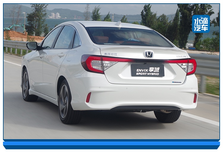 外观与内饰的设计上延续了燃油版车型的设计,本田最新家族式前脸,飞翼式前脸,搭配羽翼式LED前大灯。C字形尾灯在上方进行连接,上方还带有小鸭尾的设计。整体造型棱角分明,有一种蓄势待发之势,运动感十足。细节部分,前后标志中加入蓝色装点,两侧翼子板和尾部标识,表明自己混动的身份。