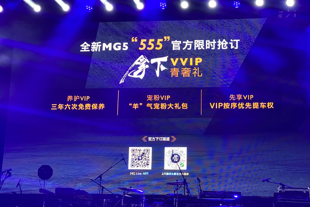 除了MG领航以外,全新MG5 (配置|询价)在当晚开启抢先盲订,抢订可享三年六次免费保养,“羊”气宠粉大礼包,VIP按序优先提车权。