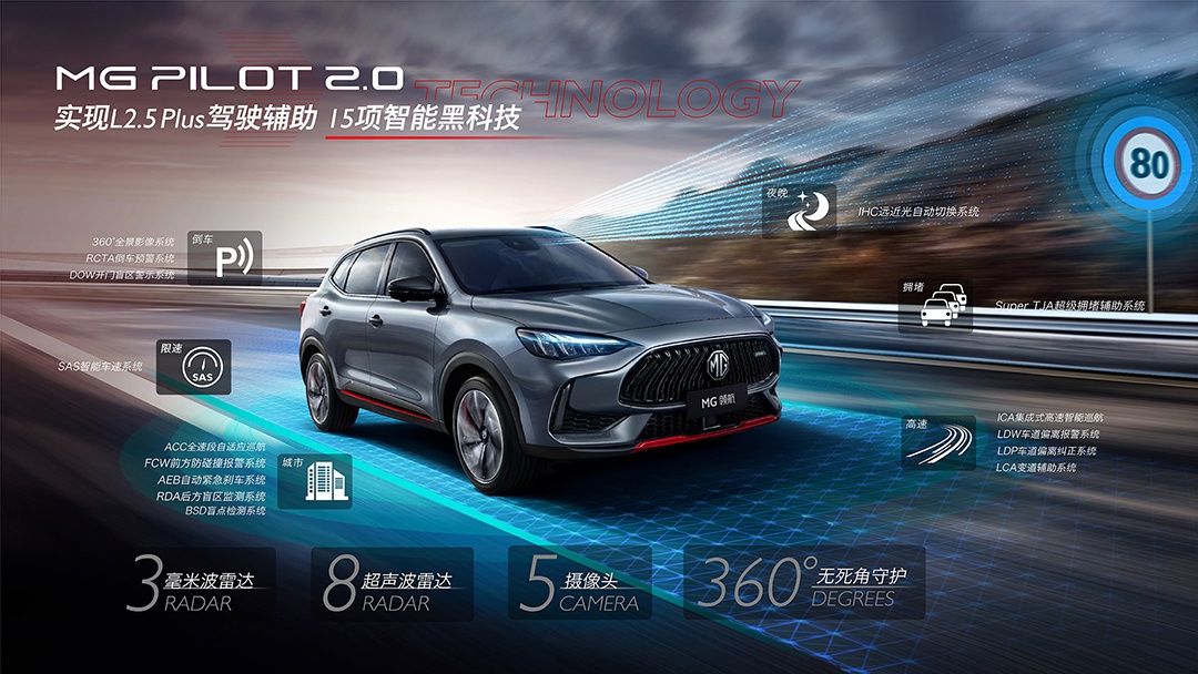 在驾驶辅助系统上,新车搭载的MG PILOT 2.0驾驶辅助系统已经达到了L2.5级别,提供ACC全速段自适应巡航、ICA集成式高速智能巡航以及由AEB自动紧急制动系统、LDW车道偏离报警系统、RDA后方盲区系统。