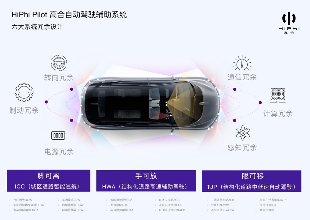 除了实现了AVP,高合HiPhi X搭载的HiPhi Pilot 自动驾驶系统是目前唯一配备根据航空器安全设计原理一样的双冗余系统;车辆可在0-130km/h的全速域范围内实现车辆的起、停、转、行,做到“脚可歇,手可放,眼可移”。