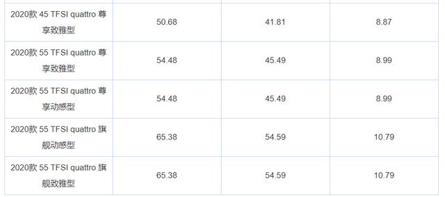 价格方面,近期我们从青岛某经销商处获悉,奥迪A6L目前最高可享10.79万元现金优惠,相当于打了8.4折,优惠力度是今天三款车型中最大的。最低价车型为奥迪A6L 2020款 40TFSI 豪华动感型,指导价40.98万元,裸车最低价33.81万,优惠7.17万起。最高优惠车型为奥迪A6L 2020款 55TFSI quattro 旗舰致雅型,指导价65.38万,最低价54.59万,优惠高达10.79万元。对于那些喜欢买高配车的人来说,奥迪A6L顶配的价格优惠是最大的,所以想买的朋友可以考虑一下。