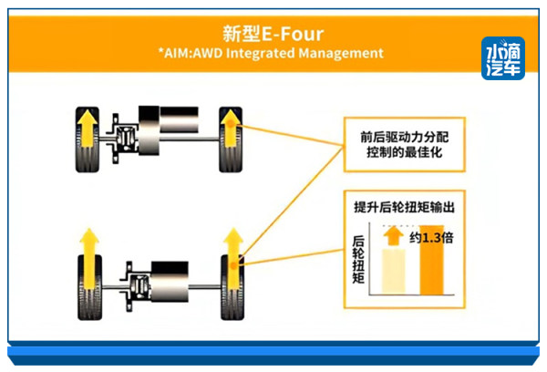 相比以往的传动轴传递动力实现四驱,威兰达混动版四驱车型的电子四驱结构并没有物理连接,省去了传动轴带来的动力损耗,取而代之的是电。后桥搭载一台最大功率40kW,最大扭矩121N·m的电机,用来驱动车辆,也由此获得了“最省油四驱SUV”的称号。当然,威兰达的E-Four电子四驱不仅仅是省油,四驱系统也不只有这一种。