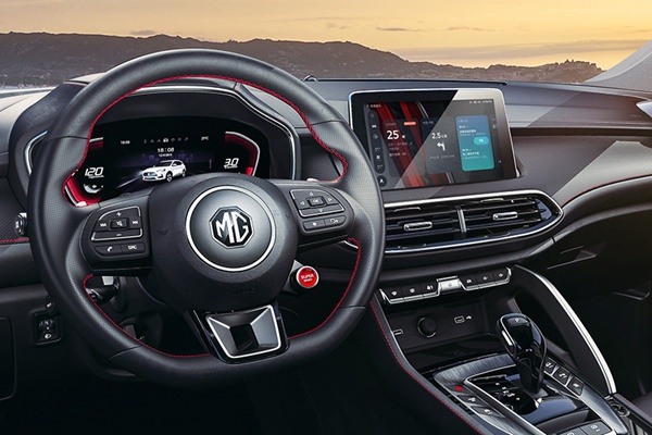 新车外观有赛博灰、燃动红、冲浪蓝、曜石黑、珠光白这5种选项,而内饰有航海蓝和骑士黑两套格调。内装区域传承了名爵看家的科技风潮,领航的特征点既夺目又显眼,比方说12.3英寸全液晶仪表、10.1英寸中控大屏、256色交互氛围灯、全景天窗、BOSE音响、无线充电、电子挡杆等。