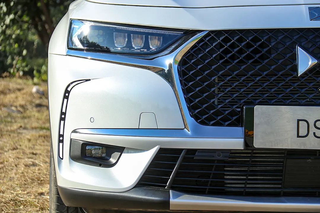 看向DS 7的前脸,不由自主的就会被它被称为“DS之翼”的独特镀铬饰条所吸引,这个设计源于DS 19车型,使DS 7在潮流和经典中找到了平衡。被“DS之翼”包裹其中的是采用六边形设计的进气格栅,它的内部由亮黑色钻石切割菱形结构组成,整体造型搭配在一起,展现出法国车独有的设计感。