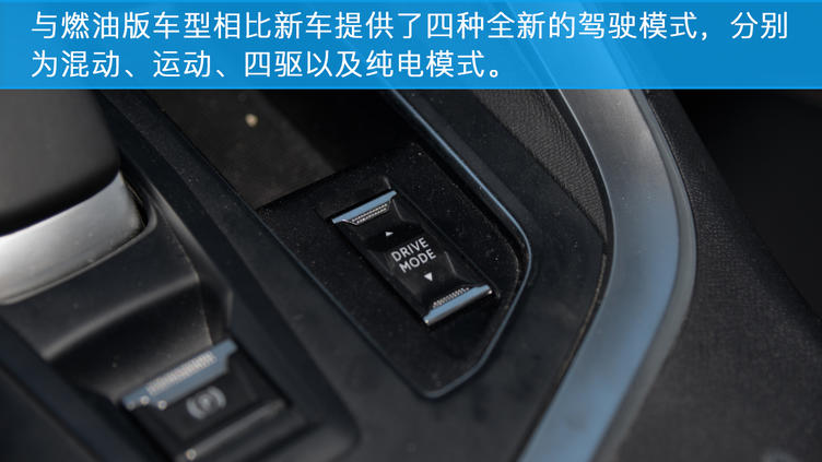 纯电模式下的动力表现虽然和运动模式还有一定的差距,但同样是因为电动机的输出特性,整套动力的响应非常不错,并且由于后轴电机的工作效率更高,所以纯电模式下会有一些偏后驱的感受。在四驱模式下,后桥电机始终介入工作,在驾驶者需要更强的动力时,前桥电机、发动机会伺机介入。