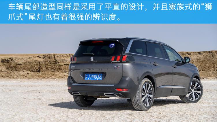在车身尺寸方面标致5008的长宽高分别为4670/1855/1655mm,轴距为2840mm,和同级别车型相比这样的表现并不出众。车身侧面的造型依旧是较为动感的,双腰线以及高轮拱的设计为其带来了非常运动的视觉效果。此外,由于它是一台7座的SUV车型,所以在车顶的设计上还是较为平直的,这样可以为第三排乘客提供更好的头部空间。车辆尾部造型同样是采用了平直的设计,并且家族式的“狮爪式”尾灯也有着很强的辨识度。