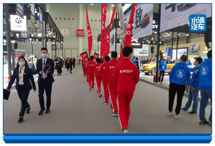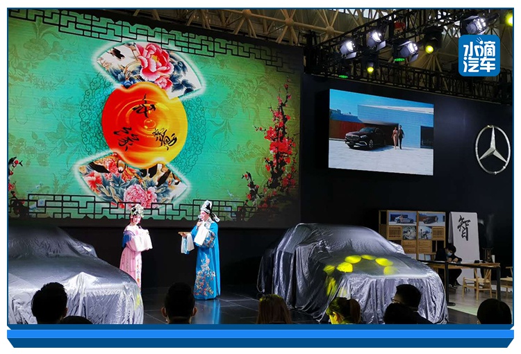 另外很有趣的一个点是,武汉车展部分程度上揭露了车企年轻化战略、针对Z时代营销打法的本质。泰迪熊的胸前写着“要省油、买日产”;马里奥举着写满优惠内容的牌子在车展里穿梭;JK小姐姐们在展台前列成两队,紧挨着她们的一群人,穿着中国李宁的衣服;汉服小姐姐们拿着一沓宣传海报,逢人就发;即使奔驰也不能免俗,台下的人西装革履,台上咿咿呀呀唱着汉剧。