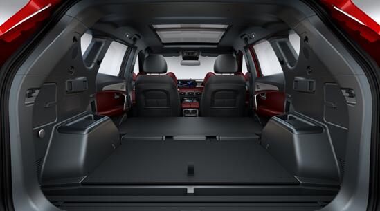 空间如此,满足一般家庭出行不成问题,当然第三排在乘坐舒适性上肯定是要打些折扣的。另外,在满载的情况下,后备厢空间不算大,但放倒第三排后形成一个大且规整的空间,如果还嫌不够,放到第二排,进深近1.9m,空间巨大。而且,还配备了电动尾门,实用性不错。