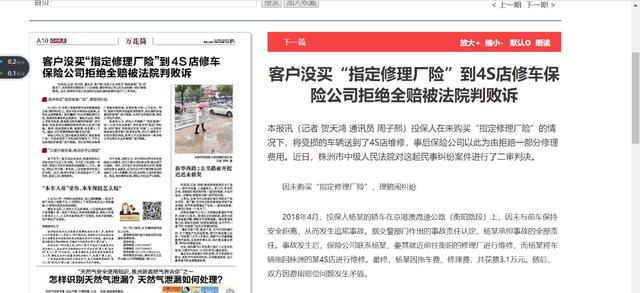 早在2018年,湖南株洲就发生过一起:"客户没买指定修理厂险到4S店修车,保险公司拒绝全赔的案子",可喜的是法院判车主胜诉。