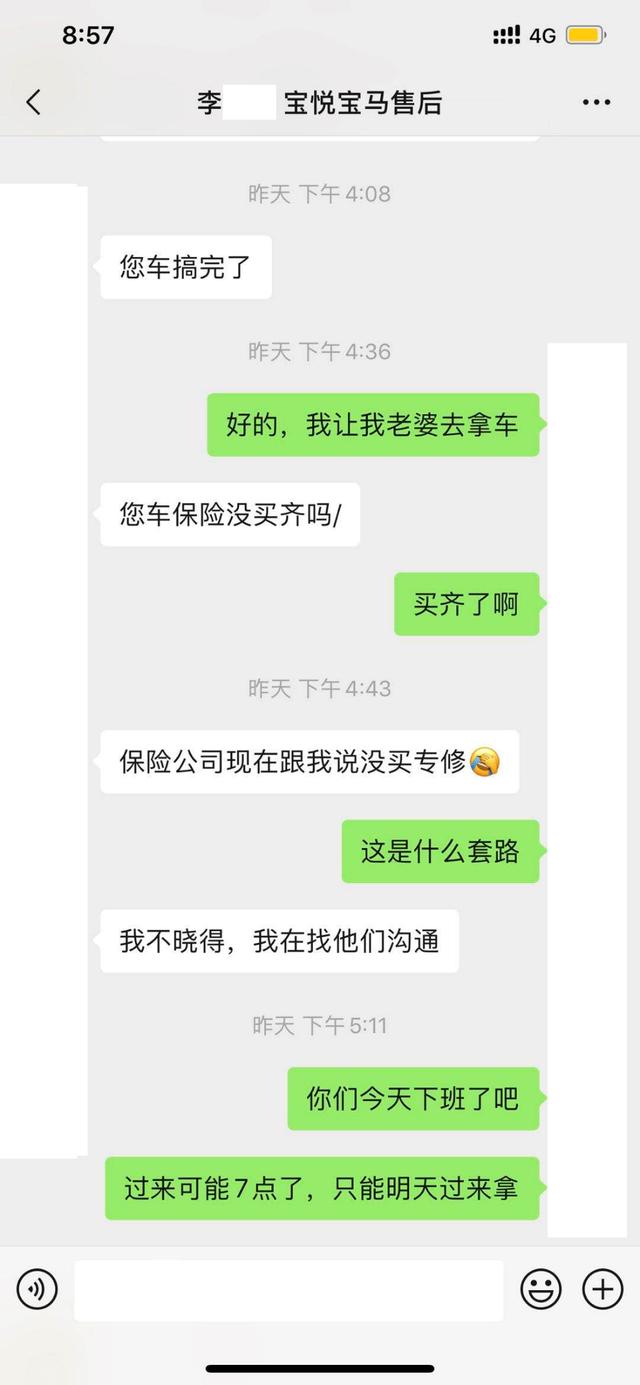 需要注意的是,在此过程中,平安保险的专员和长沙宝悦宝马4S店的维修顾问并未告诉曾先生的车险有任何不妥之处,车主自行到店维修后,4S店售后接待人员也未告知专修险事项,售后顾问表示:宝马530Le的维修费全部由保险公司出。