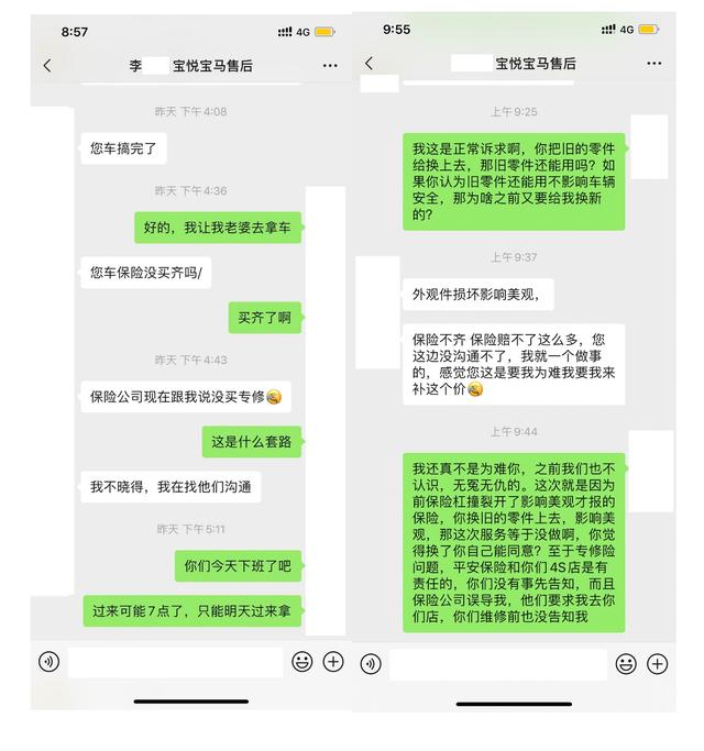 最后,当曾先生质疑平安保险和长沙宝悦宝马4S店的流程不合理时,4S店给曾先生的解决方案却是:"拆除新部件,再换上破损的旧部件"。这种操作换谁,谁能接受?长沙宝悦宝马4S店错在其三。