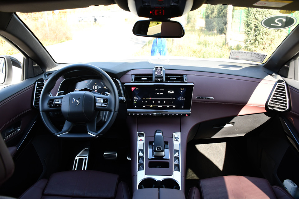 进入车内,DS 7同样处处透露着与众不同的味道。12.3英寸液晶仪表、12.3英寸中控屏以及拥有大面积镀铬装饰的换挡区域,呈现出十足的科技与精致感。