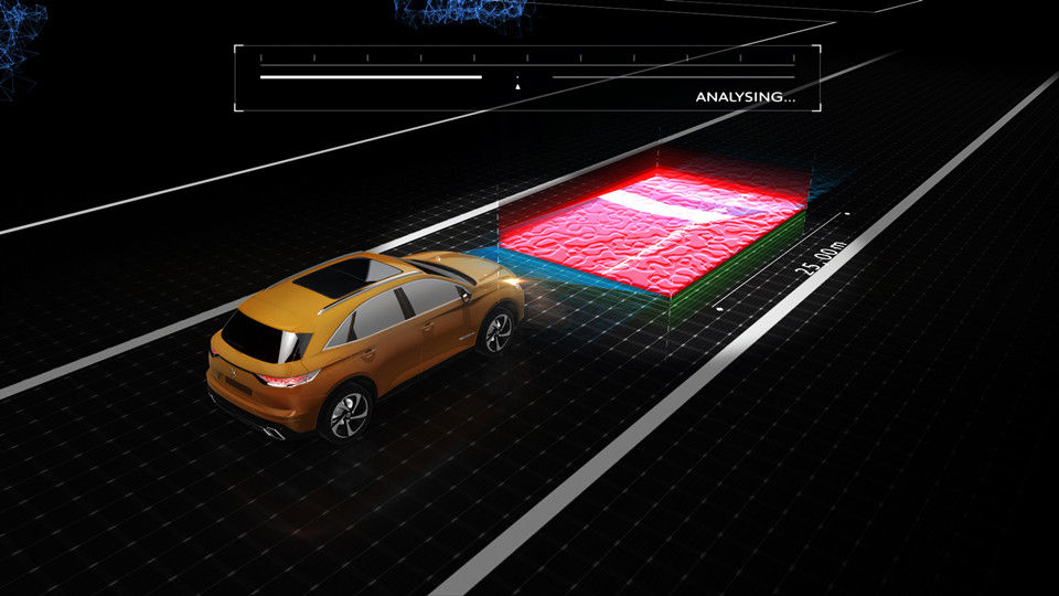 底盘部分,DS 7所采用的是前麦弗逊式独立悬架和后多连杆式独立悬架,本次试驾的顶配车型还配备有“魔毯自适应悬架系统”。