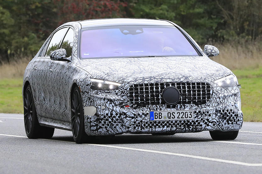 外观方面,采用AMG家族式的直瀑式网状前格栅,大灯组与新款S级 (配置|询价)的几何多光束LED大灯十分相似,底部进气格栅或许为三段式设计。