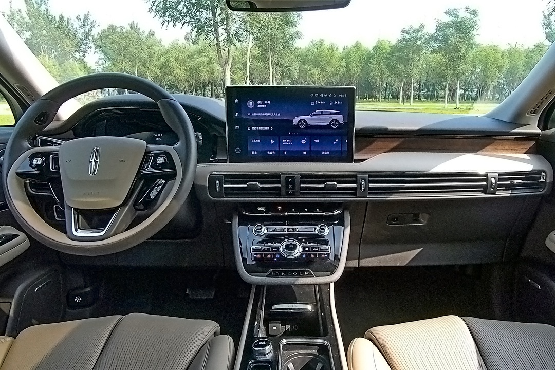 冒险家的车内具有十分浓重的美式豪华气息,大面积的真皮、木纹和镀铬材质铺满了整个车内。此外,冒险家车内还配备了12.3英寸全液晶仪表和12.8英寸中控屏,在科技感的营造上也十分到位。
