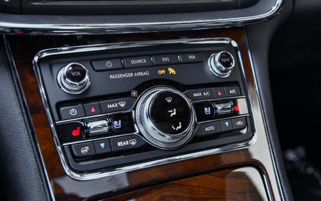 内饰方面,大陆的车内有四种配色可选,其中门内饰板、中控台下半部分和座椅有米、黑、灰、棕四种配色,用料以皮革和木纹为主,触感十分考究。内饰造型则以平直的线条为主基调,与车身外部风格相契合。方向盘除最低配车型外都采用电动调节,外圈采用名为Wollsdorf的真皮包裹,手感不错。这些细节之处的到位也正是老板们喜欢林肯等位代表的美系轿车原因。