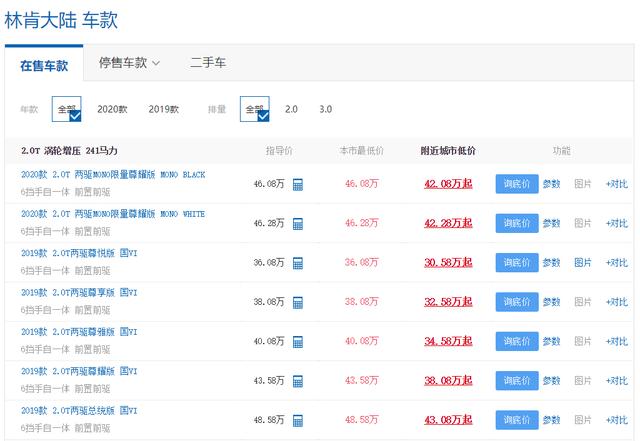 最后在动力上,在售的国六车型提供2.0T发动机可选,最大功率为241马力,相比早前的国五2.0T车型下调了20马力。另外,3.0T车型也只在国五车型上才有,最大功率可达378马力,并且配备了全时四驱功能。传动方面,林肯大陆全系都是匹配的6速手自一体变速箱,百公里油耗则为11.3L/100km。