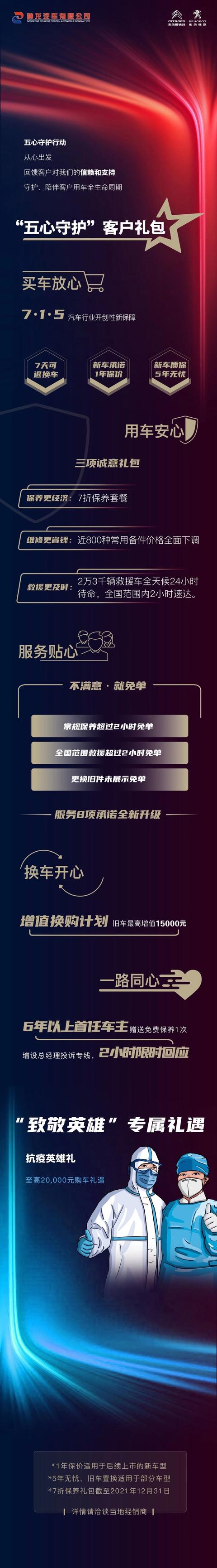 “5”就是“新车质保5年无忧”,把原来的“3年10万公里”提高到“5年15万公里”,也可以让二手车保值。