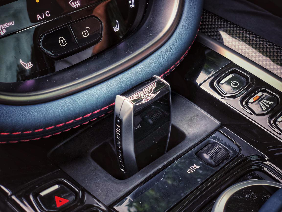 当然讲究的肯定不只是这些噱头,这个头等舱里,你能触摸到的每一块料,都要比你想象的更有料。奢华品牌当然要有超级全面的定制方案,而阿斯顿·马丁的定制部门就是我们熟知的007电影中为邦德服务的Q部门。我们试驾的两台车型中有一台的内饰是由浅白色花纹的白蜡木与羊毛毡的材质搭配而成,触摸起来会让你有一种北欧家居的轻松,这大概是我能想到的车里面第一次有羊毛毡材质的加入。