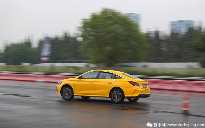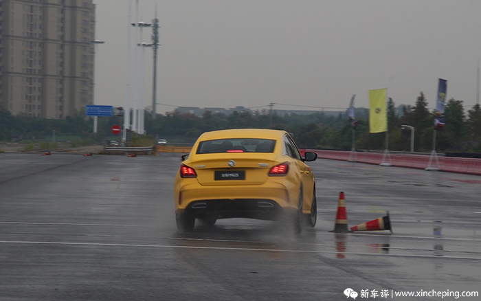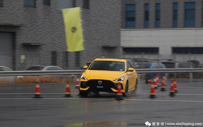 个人感觉在金卡纳小赛道环节,能试出来的东西更多。在绕桩过程中,可能是因为地面较湿,放大了车身的动态特性。在连续紧急地左右转向时,MG5的车尾会产生比较明显的向外侧滑移,也就是会产生轻微的甩尾。这对于一台前驱车来说无疑是非常棒的,在保证安全的情况下,这能给人提供很强的控车乐趣。